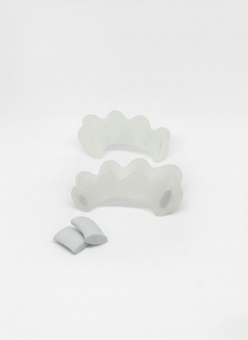 Accesorio que ayuda a mantener el espacio natural entre los dedos del pie de forma pasiva y progresiva. Favorece la alineación estructural, alivia la tensión muscular y articular, y mejora la postura y el equilibrio durante el reposo o actividades suaves como caminar o estiramientos ligeros.